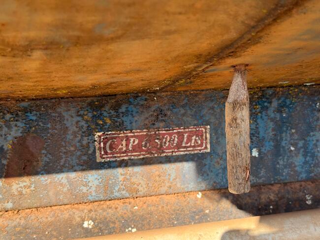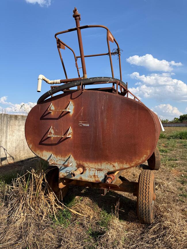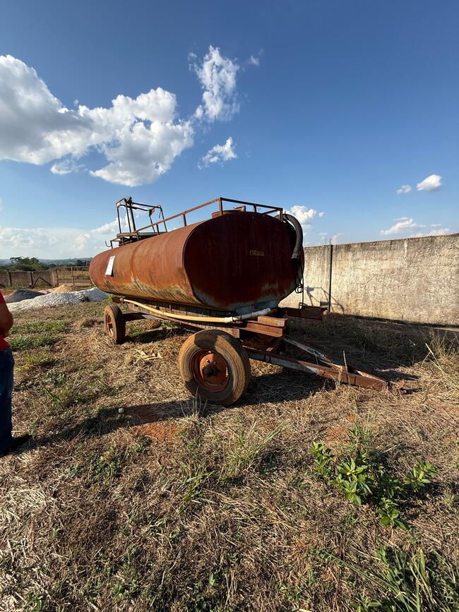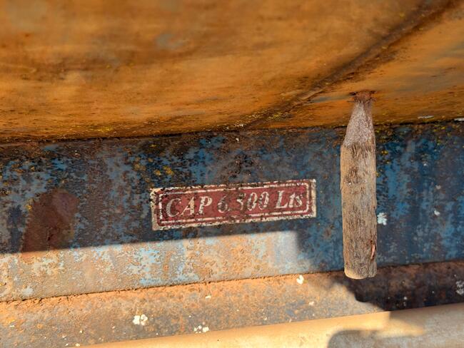 🛢️ Lote composto por tanque de água com capacidade aproximada de 6.500 litros, estrutura em material resistente, apresentando sinais de uso e desgaste natural.